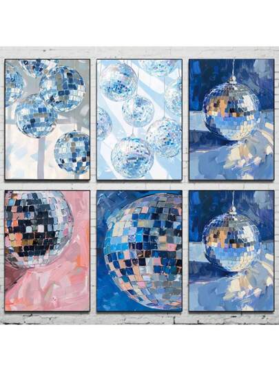 1 张海报热门蓝色墙壁艺术迪斯科舞厅家居装饰印刷少女柔软学院风多巴胺帆布画礼物无框架 - 彩色 - 查看 24