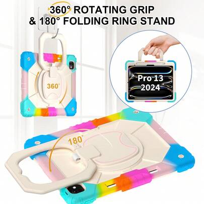 1 件装高级硅胶 + PC 防摔保护壳,专利设计,360° 旋转支架/手柄/挂件功能,防震镜头全覆盖,时尚设计,男女皆宜,科技爱好者的理想之选,高端时尚平板电脑保护壳,兼容 iPad