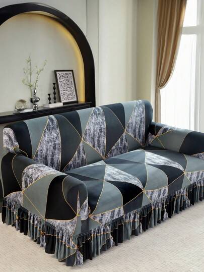 1入組印花式縮邊設計彈性沙發套,全覆式沙發保護套,防塵防污、彈性好易清洗,適用於客廳家居裝飾 - 深灰色 - 查看 1