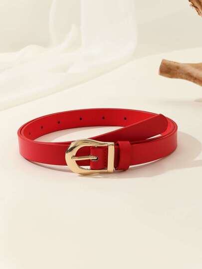 1 件 PU 皮革腰带,配闪亮金色扣,适合女士休闲时尚夏季、秋季、万圣节 - 紅色 - 查看 1