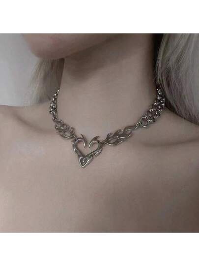 1 件朋克银空心火焰心形吊坠,女士嘻哈珠宝礼物,适合日常佩戴 - 銀色 - 查看 1