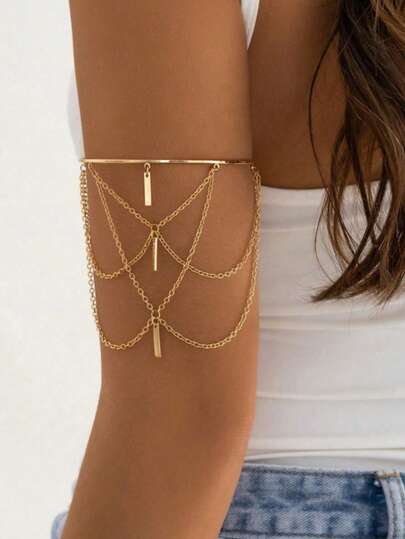 1 件朋克风格可调节臂袖金属链流苏臂手链,度假/沙滩装 - 金色 - 查看 1