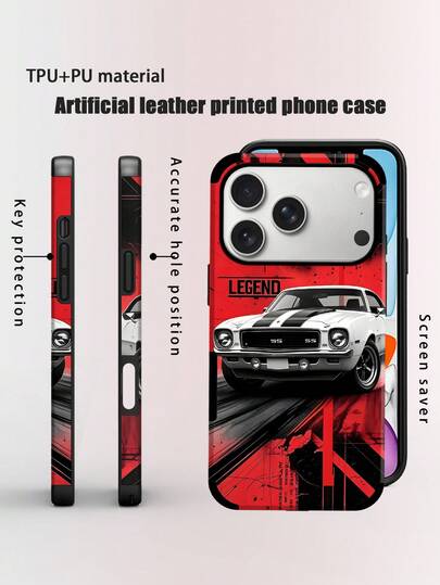 1个赛车条纹图案软皮防震防尘手工保护壳,适用于苹果17 Pro Max/16 Pro Max/16 Plus/13 Pro Max/14 Pro Max/13/14/11/12 Pro/11/15 Pro、三星Galaxy S24 Ultra,带扬声器孔设计,适合作为节日礼物