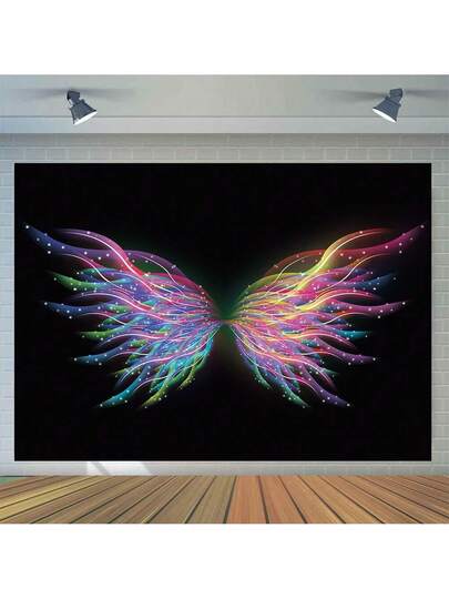 1入組彩虹天使翅膀攝影背景布,適用於浪漫婚禮訂婚派對,蛋糕桌裝飾,工作室攝影道具,提供4種尺寸可選 - 彩色 - 查看 1