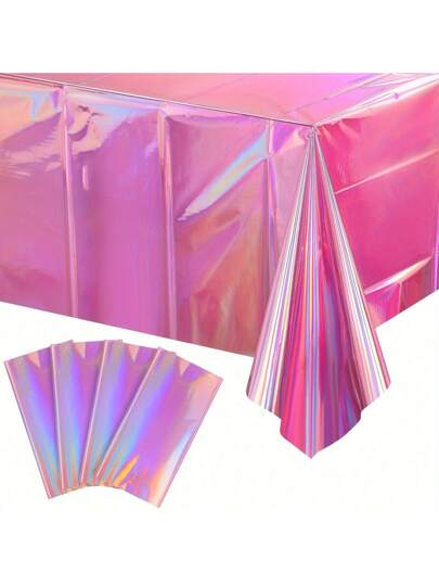 1 块彩虹粉色塑料桌布,54x108 英寸 - 闪亮全图像一次性桌布,适合生日、新娘送礼会、婚礼、毕业典礼、订婚派对和周年庆典 - 彩色 - 查看 6
