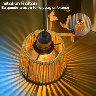 1个藤编吊灯,小型藤编悬挂灯,带定时器,电池供电,暖白光防水灯,适用于凉亭、庭院、门廊、花园和后院的装饰。 - 電池盒 - 查看 11