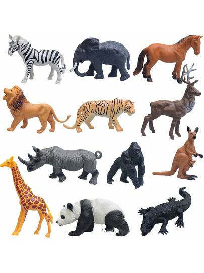 1 件逼真的动物模型,野生实心长颈鹿、大象、犀牛、棕熊、老虎、狮子,适用于动物园、家居装饰、办公室装饰、派对礼物 - 彩色 - 查看 12