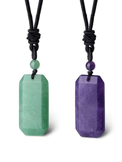 1個長方形天然石晶體掛墜項鍊,男性水晶螢石紫晶虎眼繩鏈可調項鍊h225 - Necklace - 查看 1