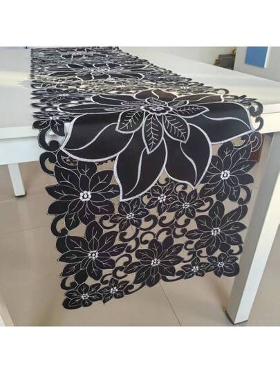 1 件矩形弹簧元素桌旗、餐垫 - 适用于餐厅、咖啡桌、橱柜、节日派对和聚会装饰 - 黑色 - 查看 4