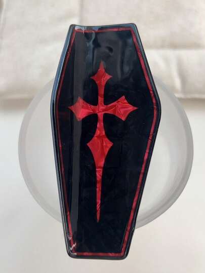 1个红黑哥特式巫师剑印花发爪夹 - 大号多爪夹,图案配饰,适用于服装和角色扮演发饰,秋季配饰,秋季发夹,冬季配饰,度假装扮,女士花朵发夹,夏季装扮
