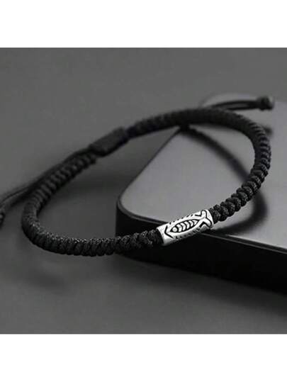 1 件复古锦鲤图案手工编织男士手链,中国风高品质珠宝父亲节礼物返校万圣节配饰朋克 - 彩色 - 查看 2