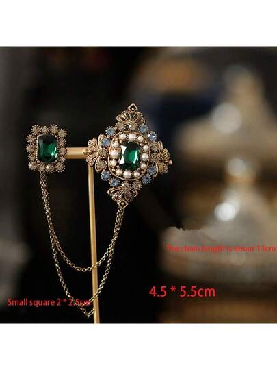 1入鑲嵌鑽石和綠色寶石的胸針,帶鏈扣,中性款式,多種顏色選擇