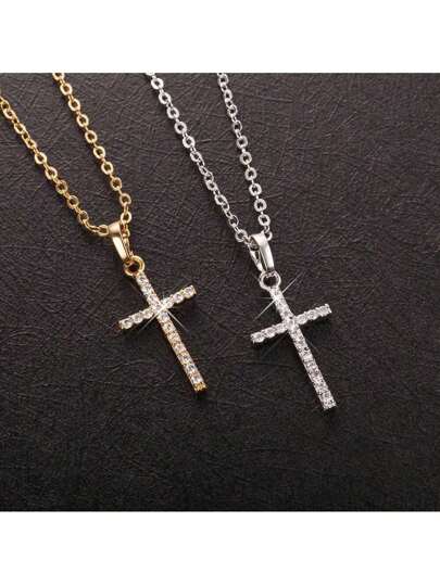 1 件水钻镶嵌十字架吊坠项链,欧美嘻哈时尚十字架项链配饰万圣节父亲节礼物学校万圣节配饰朋克 - 彩色 - 查看 1