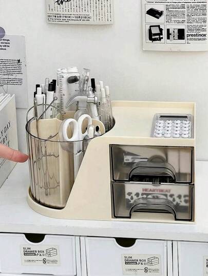 1入組小/大尺寸可旋轉圓柱形桌面文具組織盒帶抽屜,辦公室和學校用品收納筆筒 - 黃色 - 查看 10