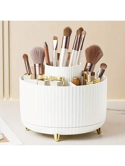 [1pc Rotating Makeup Box] 360° Rotating Makeup Organizer – 5-Compartment Brush Storage Box | Large Capacity Desktop Organizer For Cosmetics, Lipsticks & Pens (Fall 2025 Upgraded)