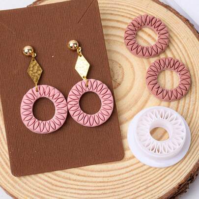 1个圆形花卉图案软陶耳环模具,凹槽几何耳环吊坠切割器 DIY 手工工具 - 白色 - 查看 5