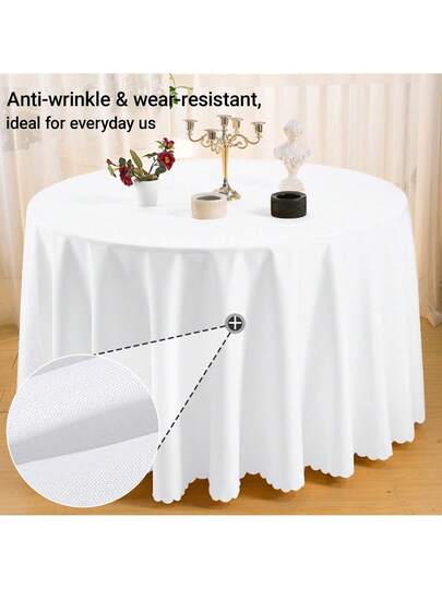 1 块圆形桌布,白色,可机洗亚麻涤纶装饰桌布,适用于餐桌、派对、宴会和婚礼 - 圓形白色 - 查看 1