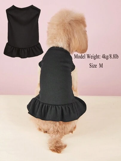一件式褶皱T恤连衣裙,公主荷叶边下摆,无袖宠物狗猫连衣裙,春夏款 - 黑色 - 查看 1