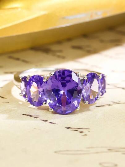 1枚S925银紫色女士戒指,镶嵌5颗合成水晶石,优雅奢华浪漫,适合母亲节、情人节、斋月等节日赠送。 - 銀色 - 查看 1