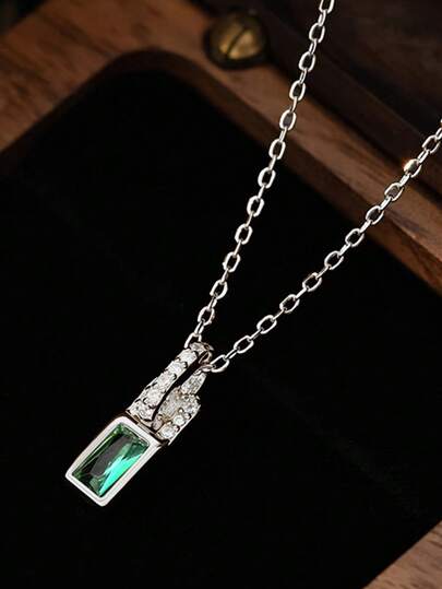 1 件 S925 纯银绿色方形钻石锁项链,女士轻盈奢华毛衣链,独特高端复古简约祖母绿方形钻石吊坠颈链,礼物 - 鎖頭 - 查看 8