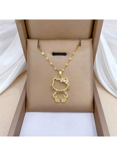 Sanrio 1件三丽鸥卡通人物Hello Kitty可爱镂空吊坠项链,适合作为女士珠宝配饰或礼物 - 彩色 - 查看 1