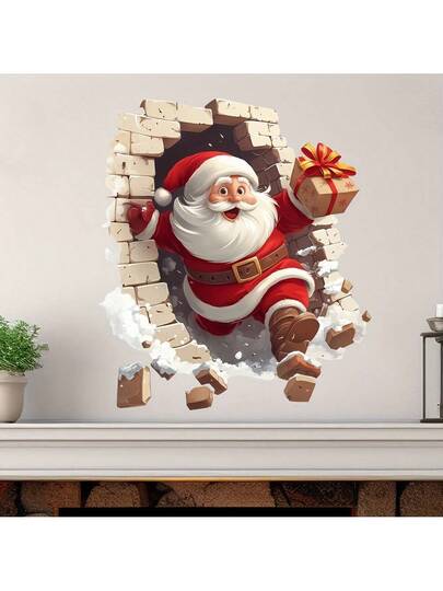 1 件圣诞老人突破墙贴 - 可移除易粘贴乙烯基圣诞贴纸,适用于客厅和厨房墙壁装饰、浴室套装、家居装饰圣诞装饰圣诞装饰贴纸墙贴房间装饰圣诞装饰 - 彩色 - 查看 1