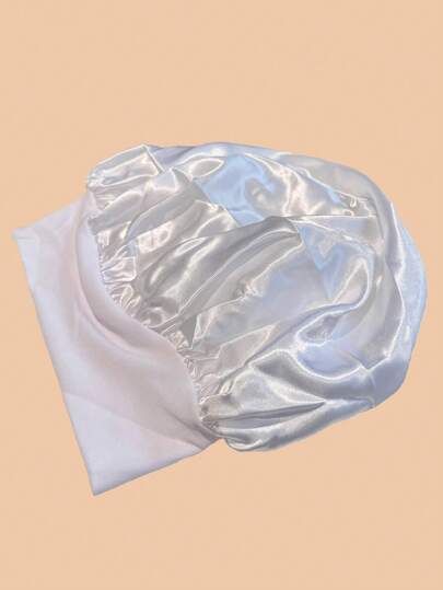 1 件装缎面宽条纹弹性头带护发帽女士 - 白色 - 查看 1