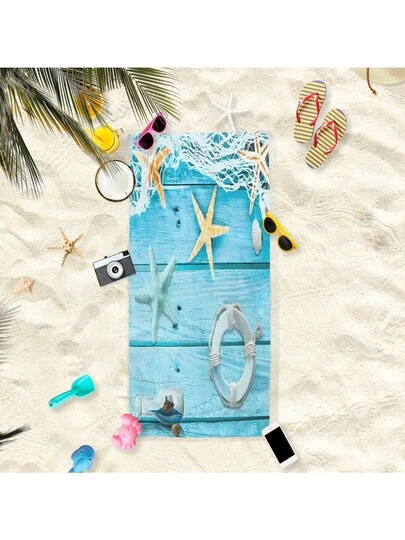 1條海貝&海星卡通印花纖維沙灘巾,男女通用戶外裝備