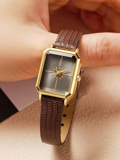 1件/套 休闲百搭时尚创意方形表盘真皮表带石英表,高性价比,兼具美观与实用性,是理想的送礼之选,年末促销,线上专享 - 彩色 - 查看 7