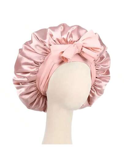 1 件/套缎面蝴蝶结可调节弹性睡眠帽,轻便沐浴浴帽 - 舒适贴合,带抽绳,男女通用睡眠护发,缎面光滑设计 - 彩色 - 查看 1