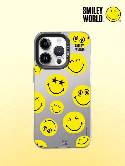 Smiley World 1 件装防震全包覆 TPU 手机壳,IMD 磨砂表面,笑脸世界黄色可爱图案,兼容 16、15、14、13、12、11 Pro Max 及系列 - 彩色 - 查看 1