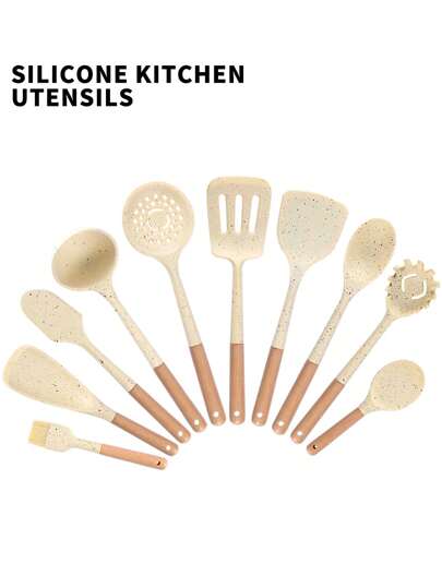 1入組矽膠烘焙工具,木柄,不粘炊具餐具帶雪花圖案,包括鍋鏟,長柄勺,刷,刮刀 - 雪花點米色 - 查看 6