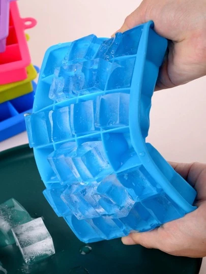 1入組矽膠冰極簡素色多格冰塊模具 - 藍色 - 查看 3