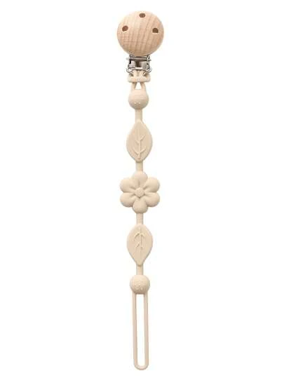 1 件装婴儿硅胶奶嘴夹,花朵图案奶嘴夹,柔软灵活的带纹理奶嘴夹,适合男婴和女婴 - 米色 - 查看 1