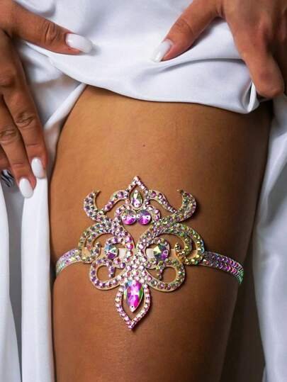 1件銀色多彩鑲鑽肚皮舞彈性腿鍊,適用於表演裝扮女士珠寶飾品 - 銀色 - 查看 1