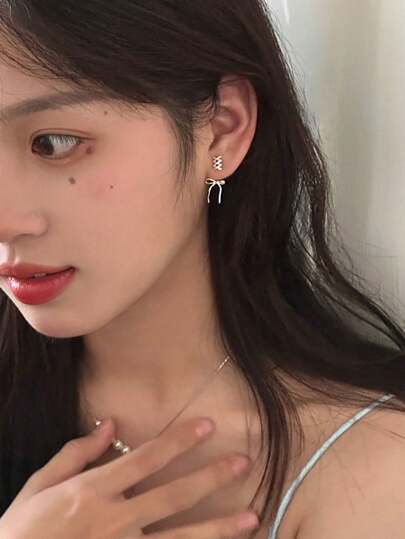 1 件女士银别针蝴蝶结耳钉,独特高端甜美清新丝带可爱新款耳饰情人节 - 銀色 - 查看 1