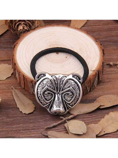 1 件银色朋克维京风格熊头发带/发带,个性化动物头弹力绳,适合日常佩戴 - 銀色 - 查看 1