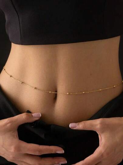 1 件简约串珠链腰链,女士度假、约会、礼物、日常佩戴配饰 - 款式1 - 查看 5