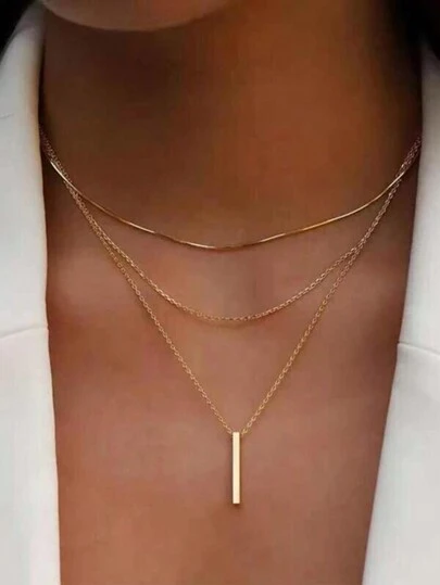 1入組簡約風鏈條長款多層項鍊適用於女性度假,日期,禮品和日常使用 - 金黃色 - 查看 1