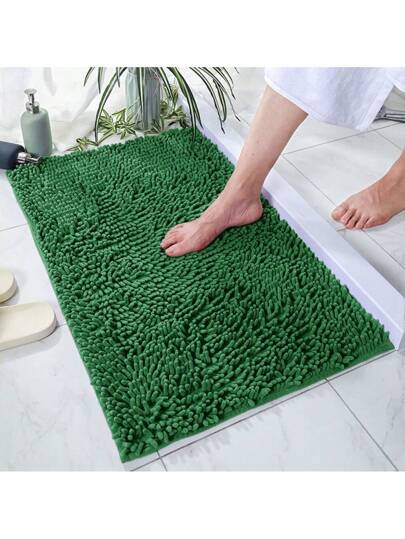 1 件简约柔软雪尼尔防滑吸水浴室地垫 - 墨綠色 - 查看 1