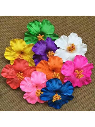 1个仿真芙蓉花发夹,10厘米,波西米亚风,适合海滩度假、摄影装饰、礼品发夹、发卡、学生用品、发饰、头部饰品、女士发饰 - 彩色 - 查看 10