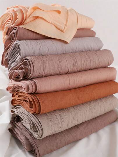 1 件柔软透气自然皱纹长围巾,细条纹褶皱纯色头巾披肩,阿巴亚配饰,适合女性头带柔软头巾女式面纱 - 彩色 - 查看 10