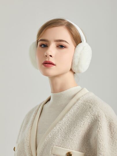 1 件纯色可折叠毛绒汉堡耳套万圣节冬季配饰 - 白色 - 查看 1