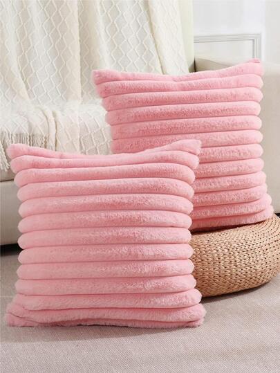 1 件纯色天鹅绒枕套(不含枕芯),现代法兰绒装饰抱枕套,家居装饰 - 粉色 - 查看 2