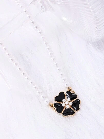 1條精致的珍珠和鑽石花鉆吊墜項鍊,適合女性使用 - 彩色 - 查看 1