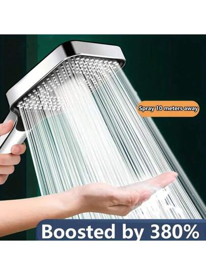 1个带增压器的方形淋浴喷头,浴室热水器淋浴喷头套装,手持式可调节水流淋浴喷头+1.5米淋浴软管,浴室配件,浴室工具 - 彩色 - 查看 10