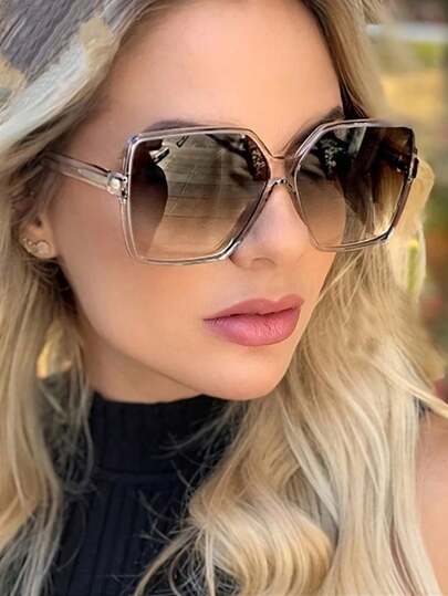 1 件方形女士超大全框时尚 Y2K 时尚眼镜超大基本款秋冬女士服装商务休闲礼品 Y2K 方形墨镜 - 彩色 - 查看 10