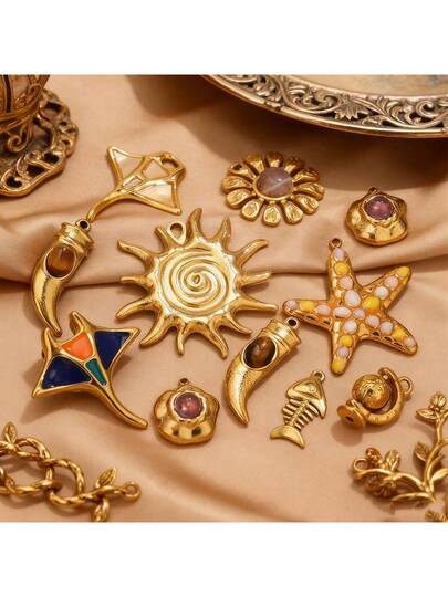 1件不锈钢镀18K金吊坠,饰有太阳、月亮、花朵和蝠鲼图案,DIY珠宝制作配件,女士不锈钢吊坠 - 29吊墜 - 查看 10