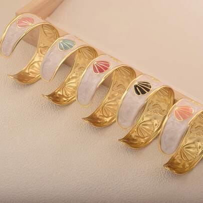1件不锈钢手链,饰有滴油贝壳图案,不褪色,时尚、优雅、简约,适合女性日常佩戴。 - 38號手鐲 - 查看 6