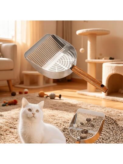 1个不锈钢猫砂铲,专为结团猫砂设计,大号,宠物用品 - 彩色 - 查看 1